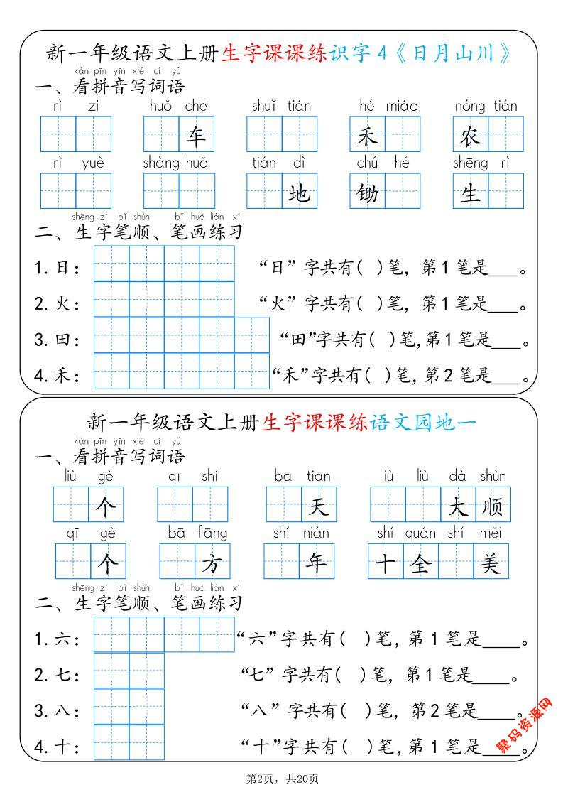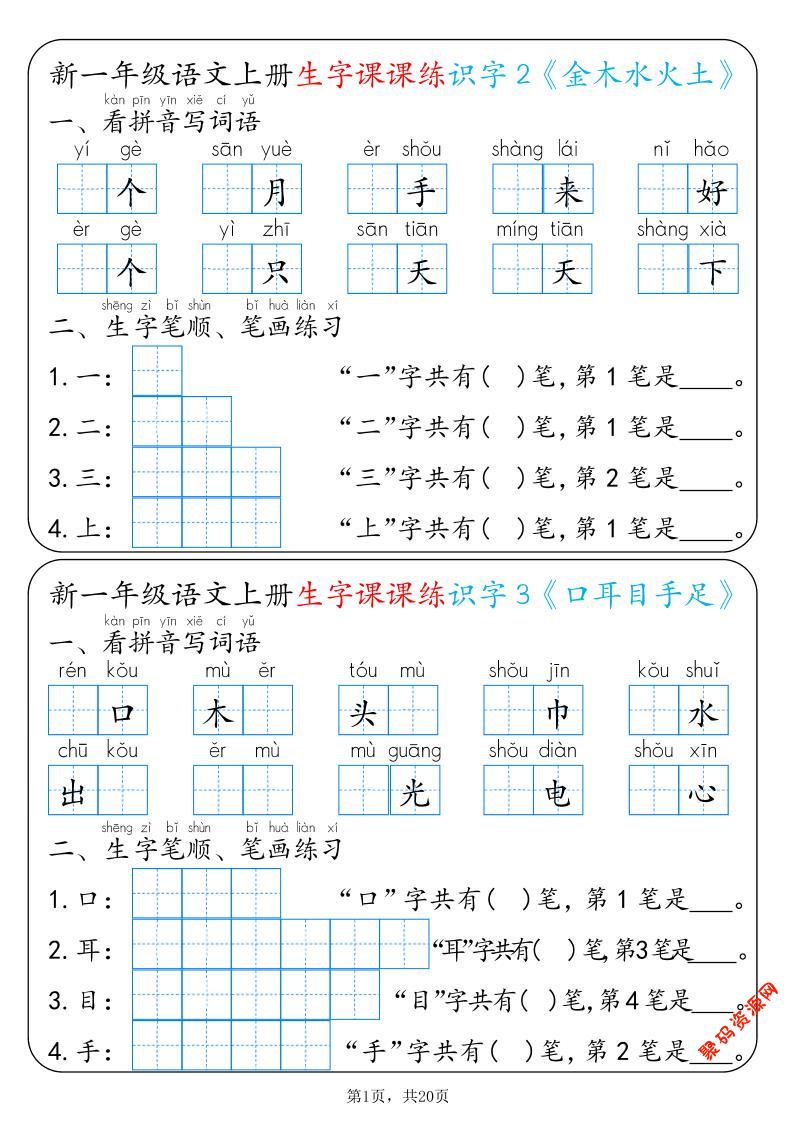 聚码网 一年级 新一上语文生字课课练每日一练22天(20页) http://www.appstore168.com/105346.html