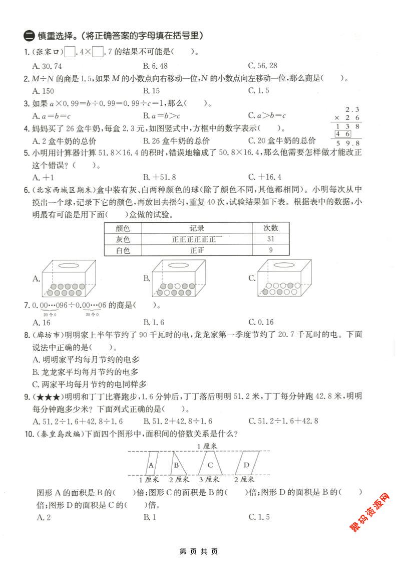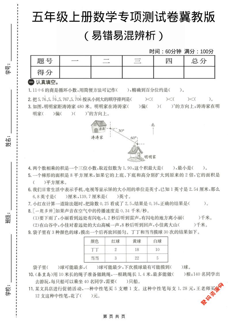 聚码网 五年级 五年级上数学易错易混辩护专项测试卷《冀教版》 http://www.appstore168.com/105357.html