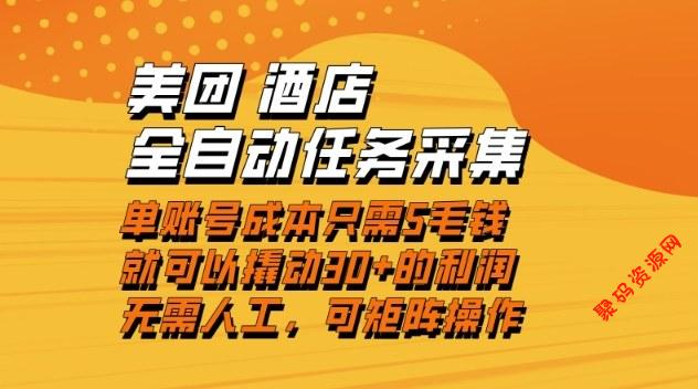 美团酒店全自动任务采集,单账号几毛钱就能撬动30+利润,成本低,操作简单,当天到账【揭秘】