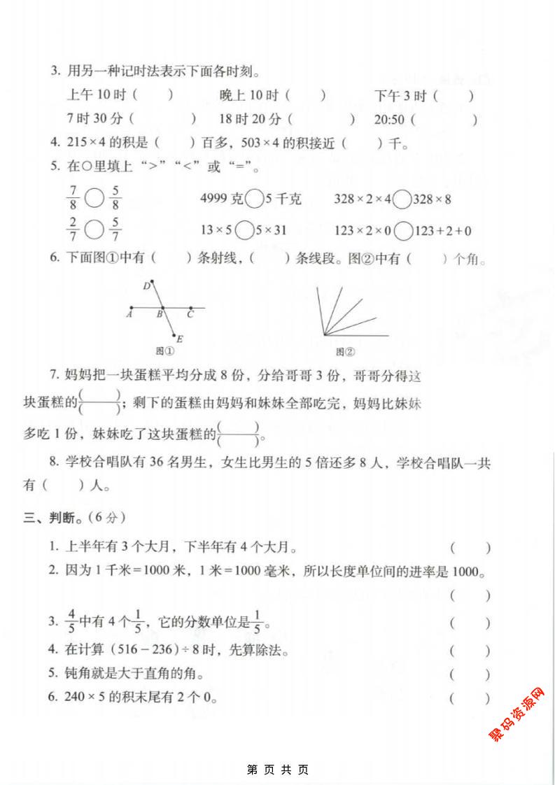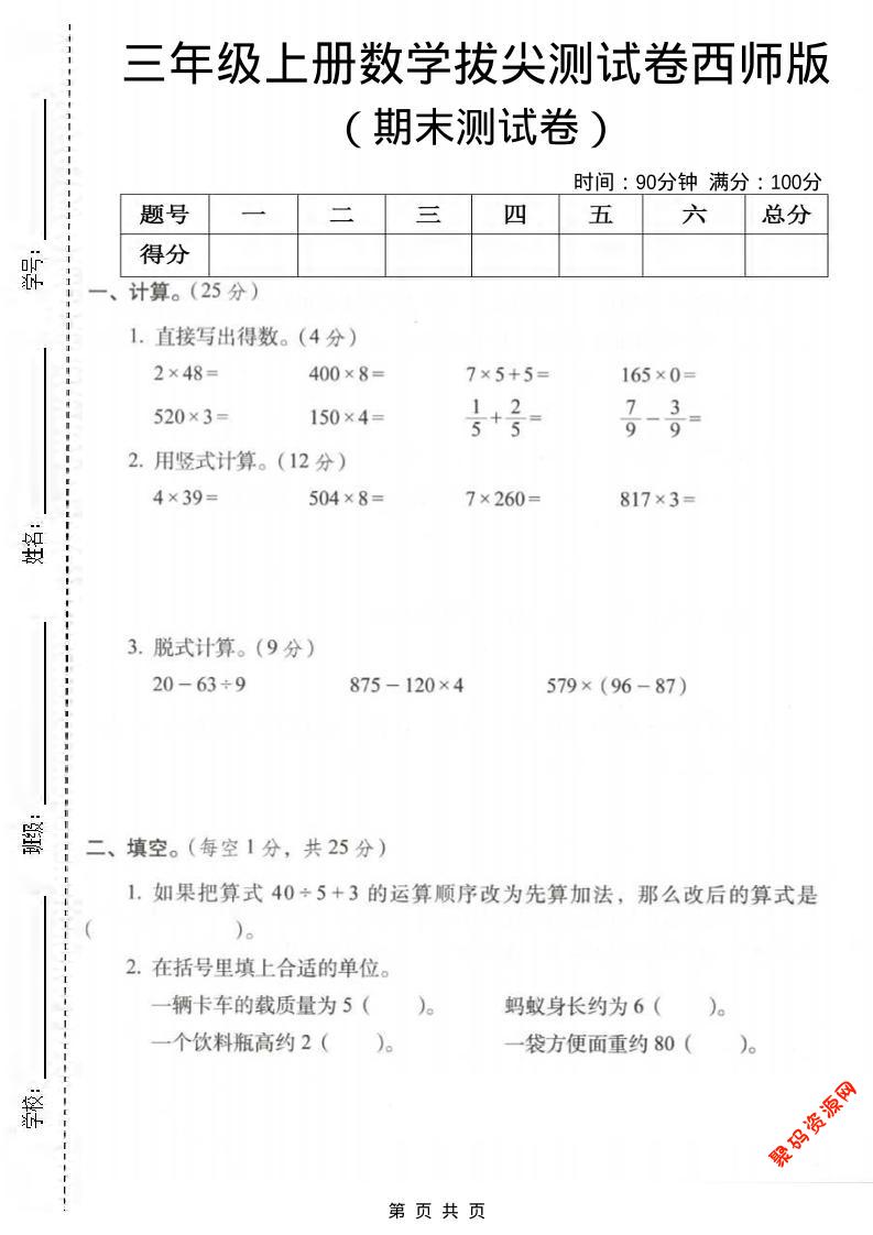 聚码网 三年级 三年级上数学期末拔尖测试卷3《西师版》 http://www.appstore168.com/105833.html
