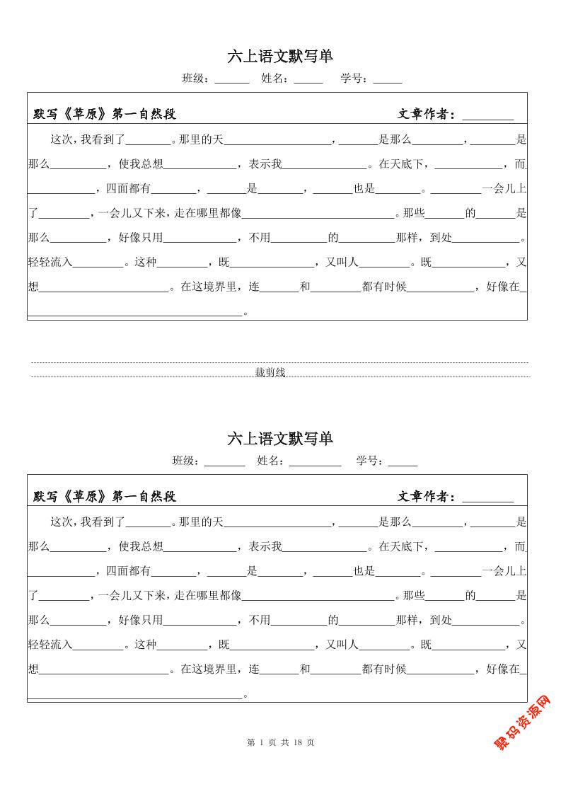 - 六上语文默写单(一式两份共18页) 2025-12-23