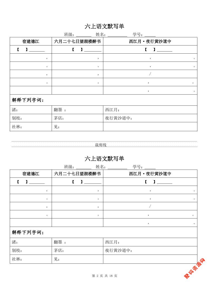 聚码网 六年级 六上语文默写单(一式两份共18页) http://www.appstore168.com/105864.html