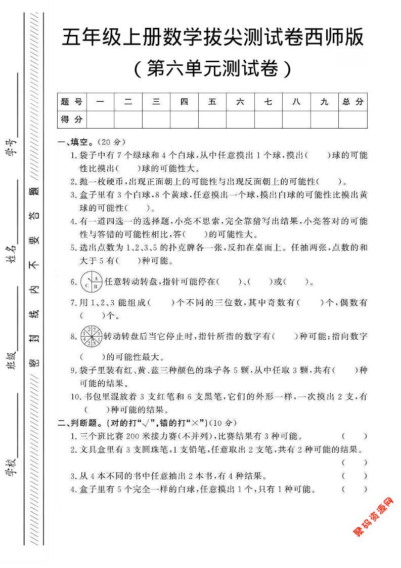 聚码网 五年级 五年级上数学第六单元测试卷2《西师版》 http://www.appstore168.com/105871.html