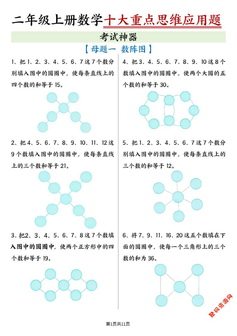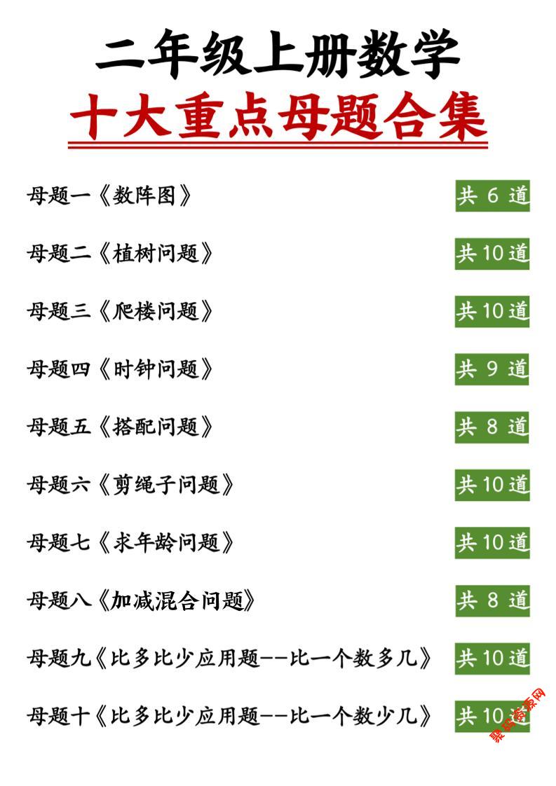 聚码网 二年级 二上数学十大重点母题合集(含答案11页) http://www.appstore168.com/105885.html
