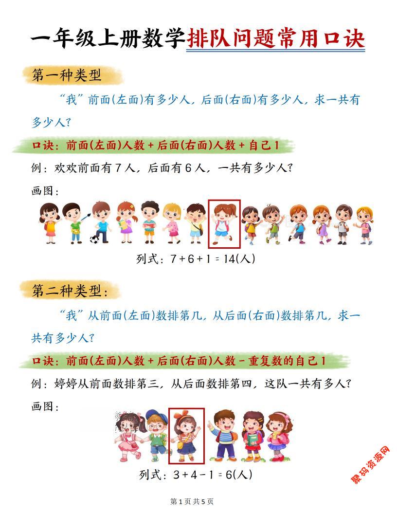 - 一年级上数学排队问题常用口诀 2025-12-23