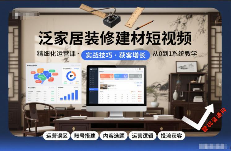 泛家居装修建材短视频精细化运营课,运营误区+账号搭建+内容选题+运营逻辑+投流获客