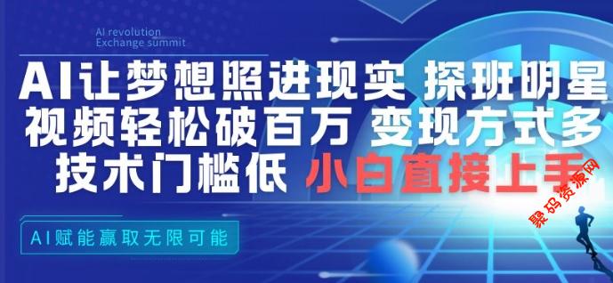 聚码网 AI技术 AI让梦想照进现实,探班明星视频,轻松破百万播放,变现方式多,技术门槛低,小白直接上手 http://www.appstore168.com/106713.html