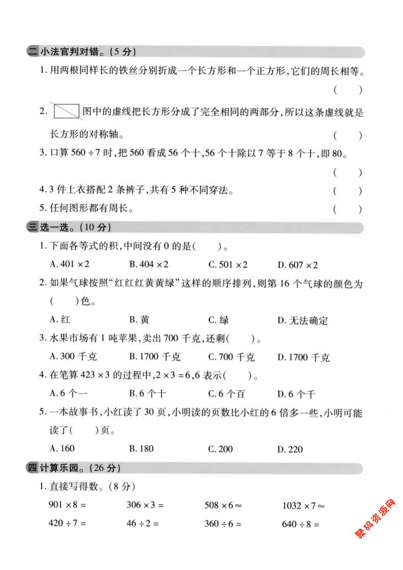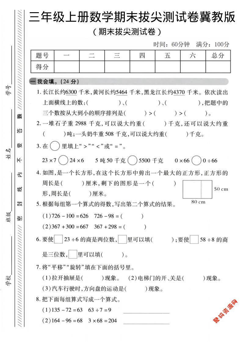 聚码网 三年级 三年级上数学期末拔尖测试卷《冀教版》2 http://www.appstore168.com/106941.html