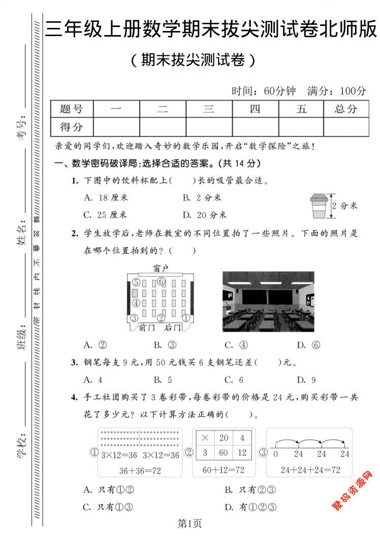 聚码网 三年级 三年级上数学期末拔尖测试卷1《北师版》 http://www.appstore168.com/106950.html