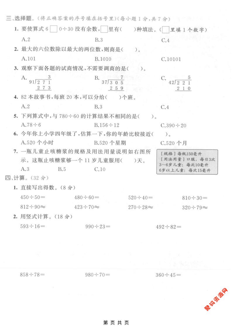 聚码网 四年级 四年级上数学第六单元测试卷1《人教版》 http://www.appstore168.com/106970.html