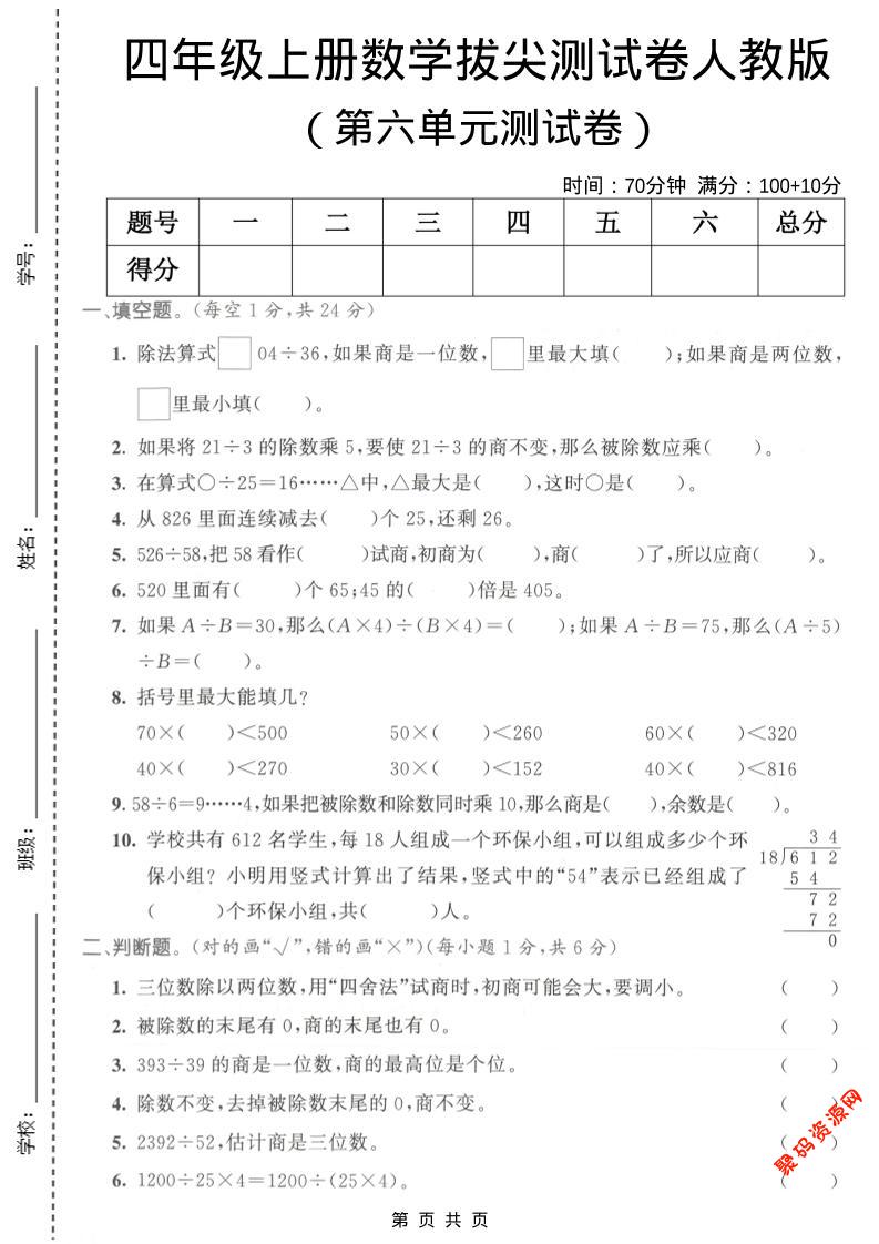 - 四年级上数学第六单元测试卷1《人教版》 2025-12-25