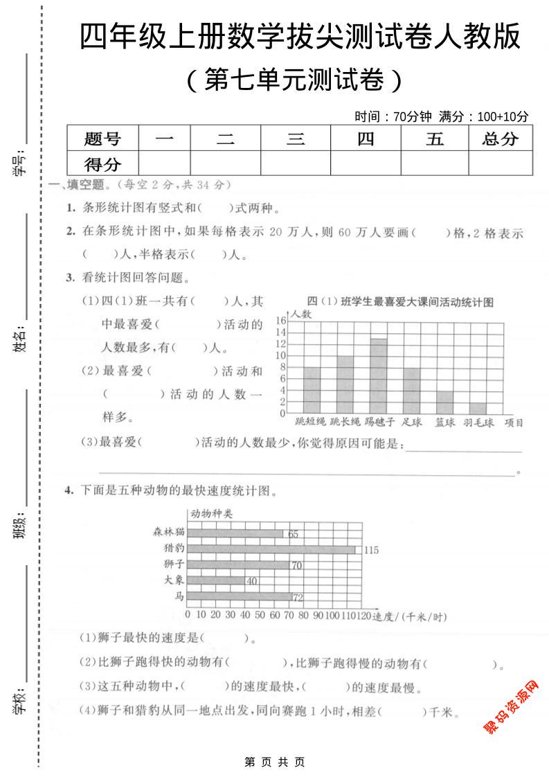 聚码网 四年级 四年级上数学第七单元测试卷《人教版》 http://www.appstore168.com/106973.html