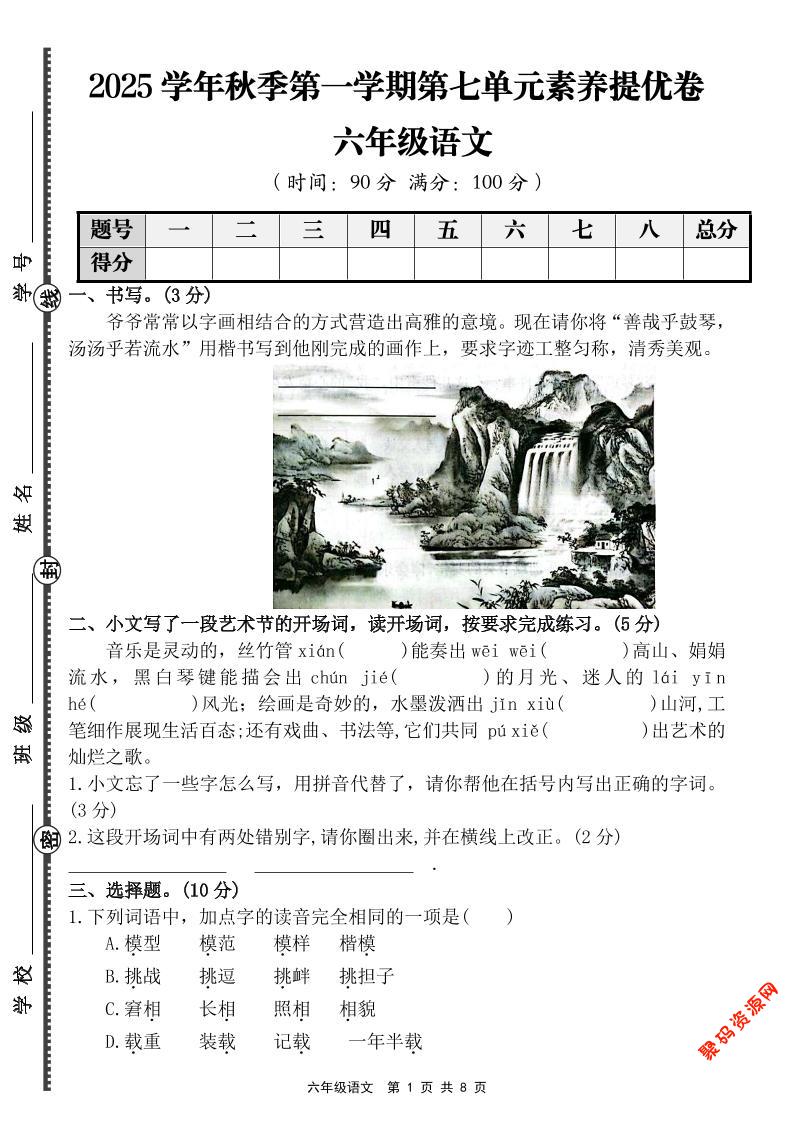 - 六上语文第七单元素养提优卷(含答案) 2025-12-25