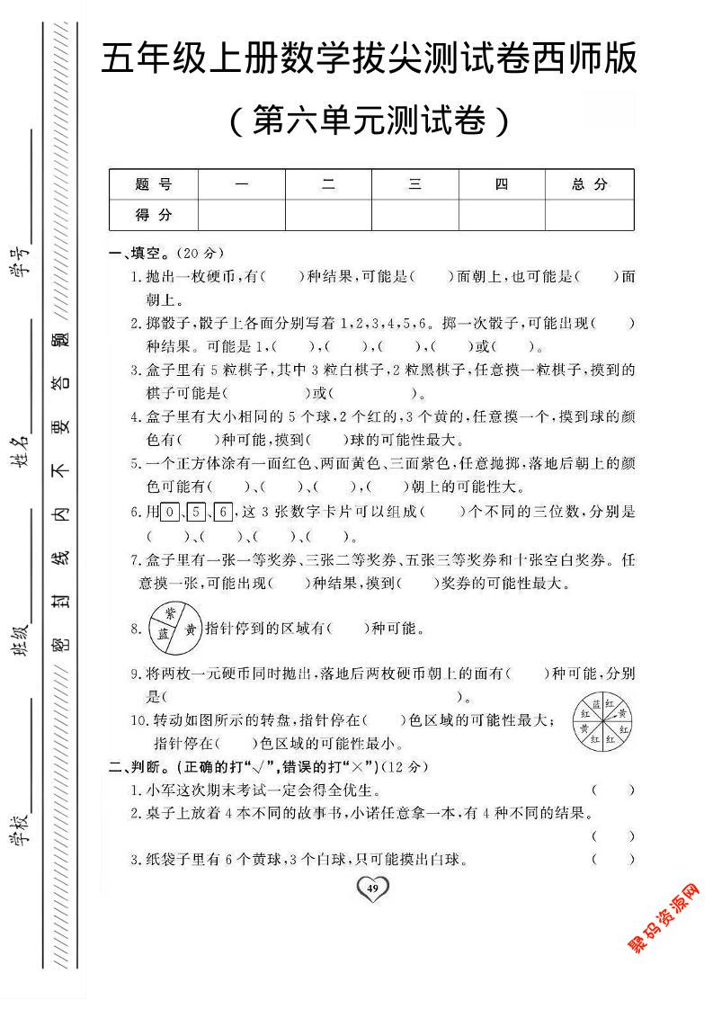 聚码网 五年级 五年级上数学第六单元测试卷1《西师版》 http://www.appstore168.com/106997.html