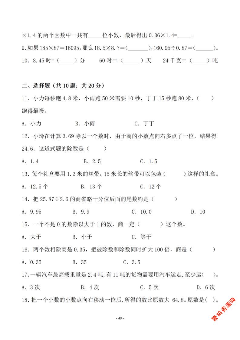 - 五年级上数学第八、九单元测试卷2《冀教版》 2025-12-25