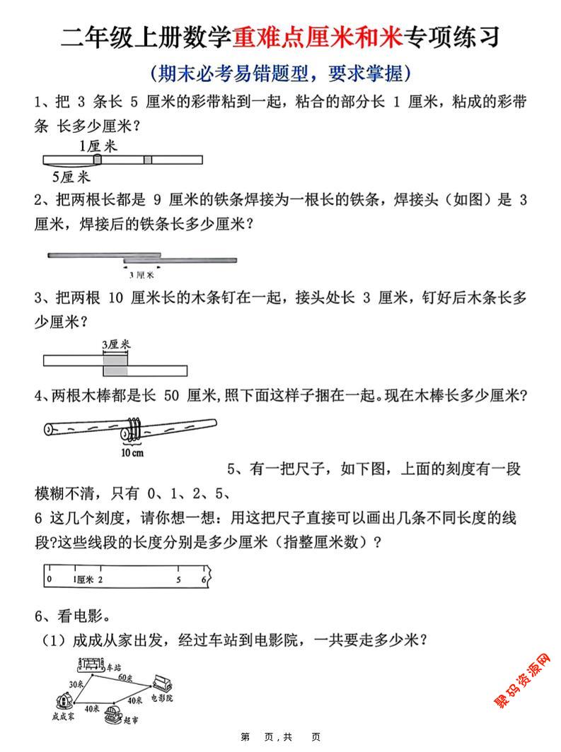 聚码网 二年级 二上数学重难点厘米和米应用题易错专项练习(含答案10页) http://www.appstore168.com/107008.html