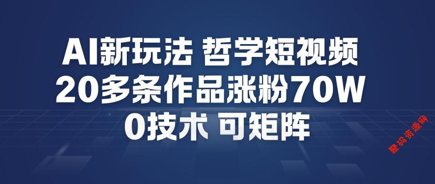 AI新玩法哲学短视频制作教学,20多条作品涨粉70W,0成本赛道,可矩阵