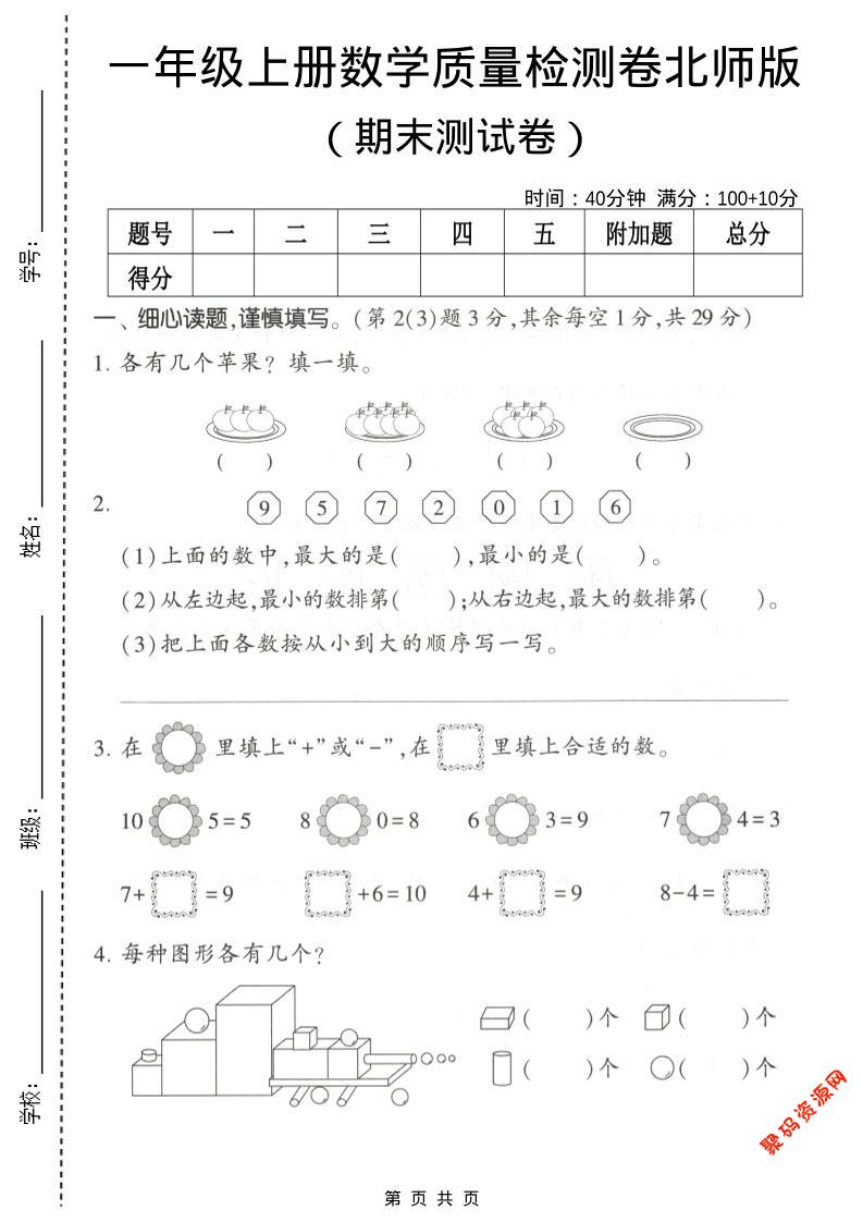 - 一年级上数学期末测试卷1《北师版》 2025-12-26