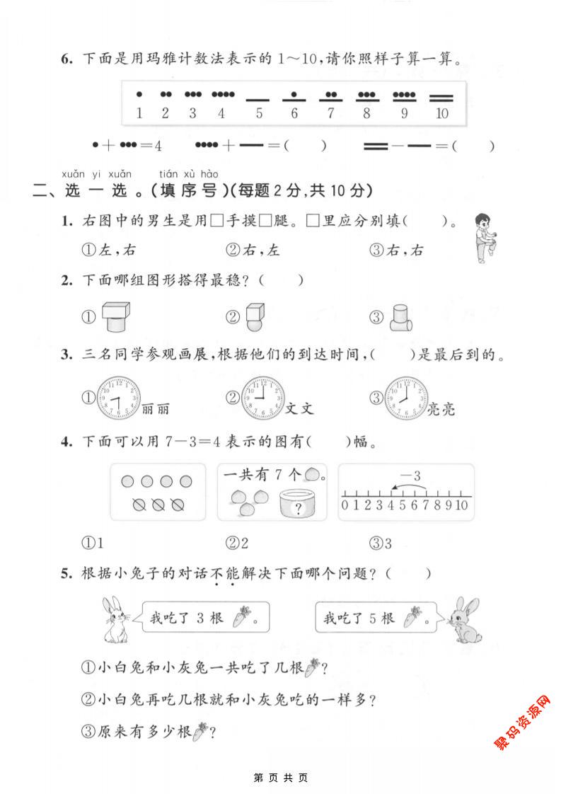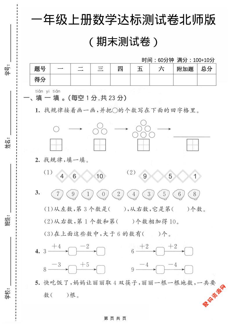 聚码网 一年级 一年级上数学期末测试卷1《北师版》 http://www.appstore168.com/107627.html