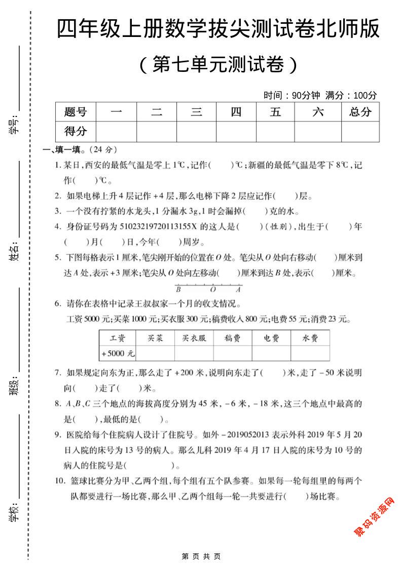 - 四年级上数学第七单元测试卷《北师版》 2025-12-26