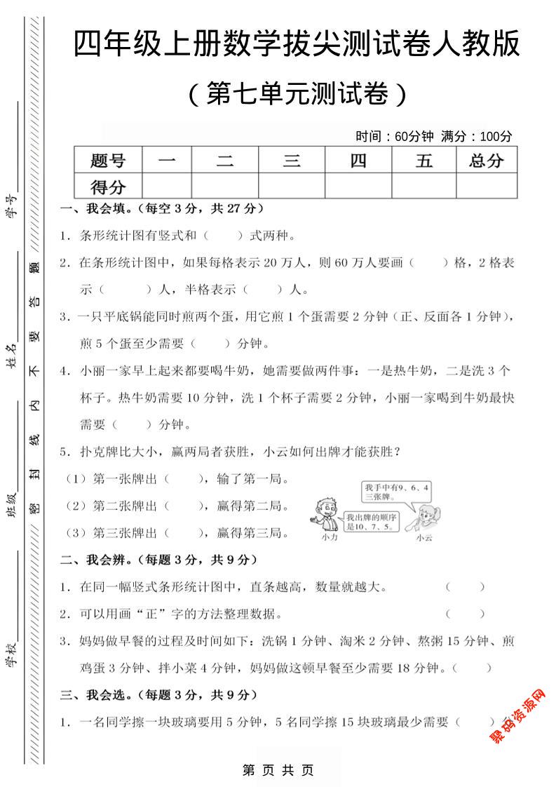 聚码网 四年级 四年级上数学第七单元测试卷1《人教版》 http://www.appstore168.com/107647.html