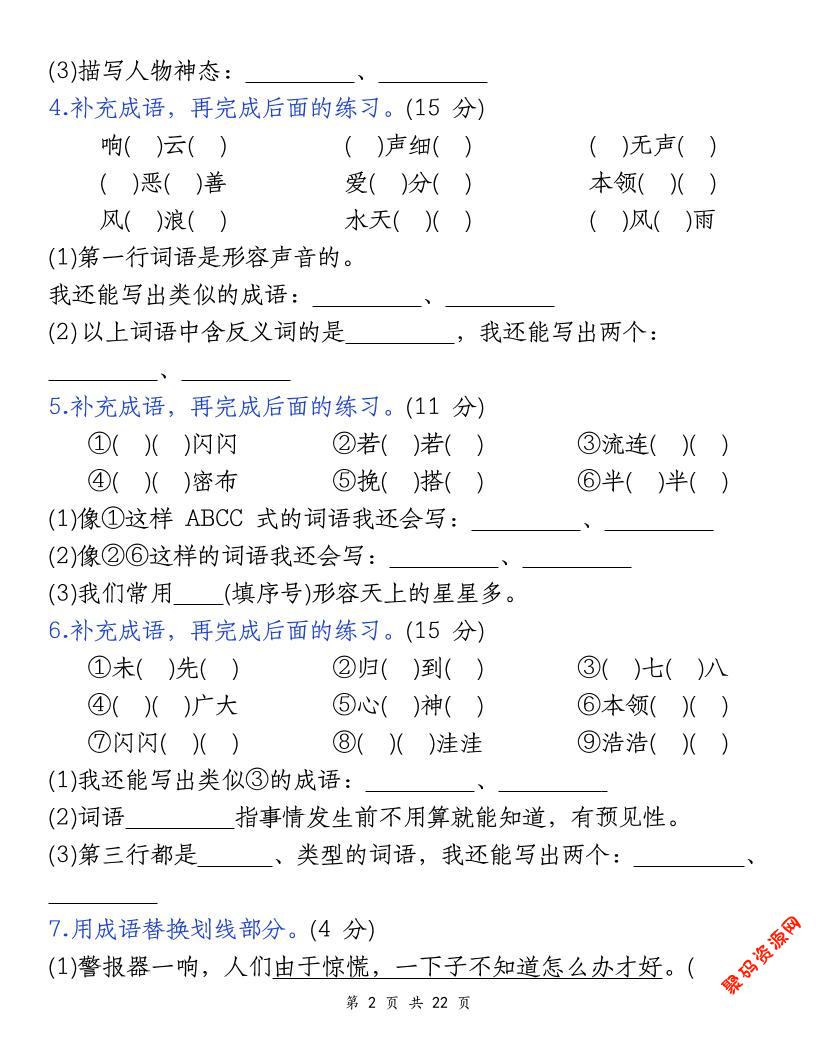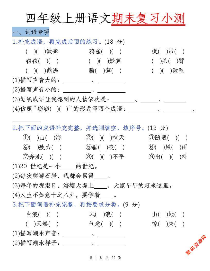 聚码网 四年级 四上语文期末复习小测(5类) http://www.appstore168.com/107661.html