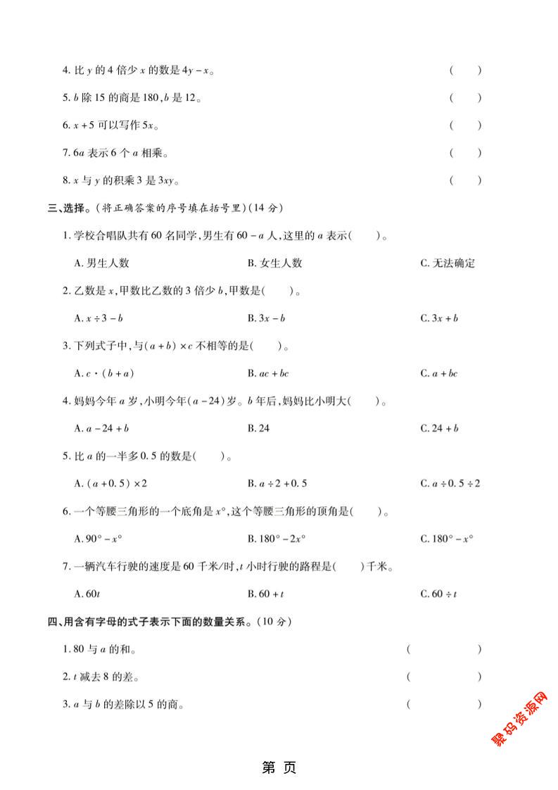 - 五年级上数学第四单元测试卷1《人教版》 2025-12-24