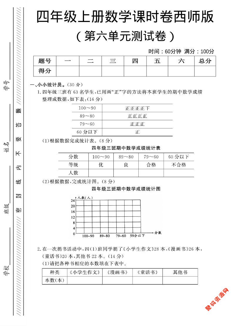 聚码网 四年级 四年级上数学第六单元课时卷《西师版》 http://www.appstore168.com/108151.html
