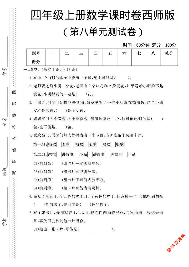 聚码网 四年级 四年级上数学第八单元课时卷《西师版》 http://www.appstore168.com/108155.html