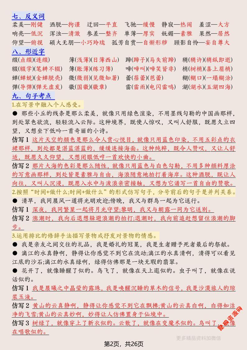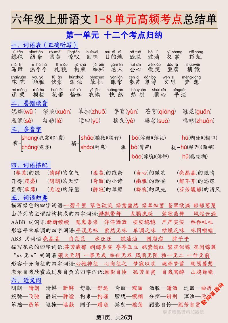- 六年级上册语文1-8单元高频考点总结单-26页 2025-12-27