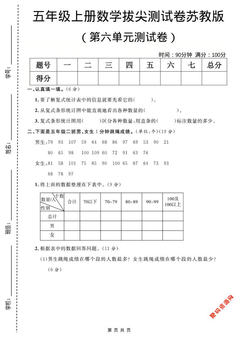 聚码网 五年级 五年级上数学第六单元测试卷《苏教版》 http://www.appstore168.com/108177.html