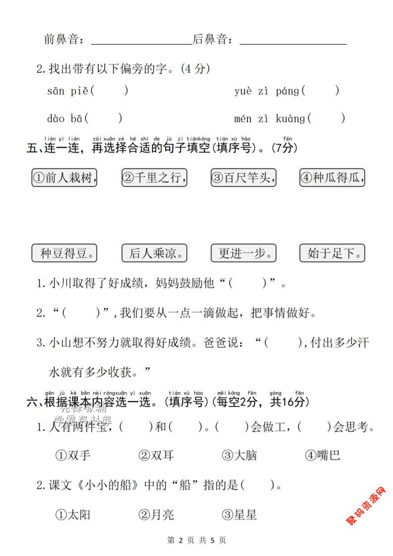 - 一年级上语文第六单元拔尖测试卷 2025-12-25