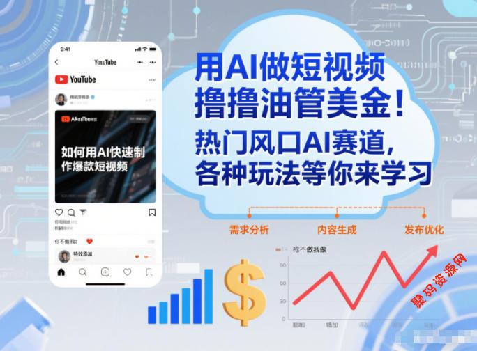 还在愁副业没方向?想抓住AI风口却不知从何下手?想賺美金却被“不懂英文、不会剪辑、没流量”劝退?眼睁睁看着AI短视频赛道爆火,别人靠油管变现盆满钵满,自己却只能观望?这款「AI短视频撸油管美金实战课」专为想抢占风口的新手、副业创业者打造,聚焦热门AI赛道+油管美金变现,拆解N种实操玩法,不用专业技能、不用复杂操作,带你轻松入局,别人不做的风口,就是你的賺钱机会!