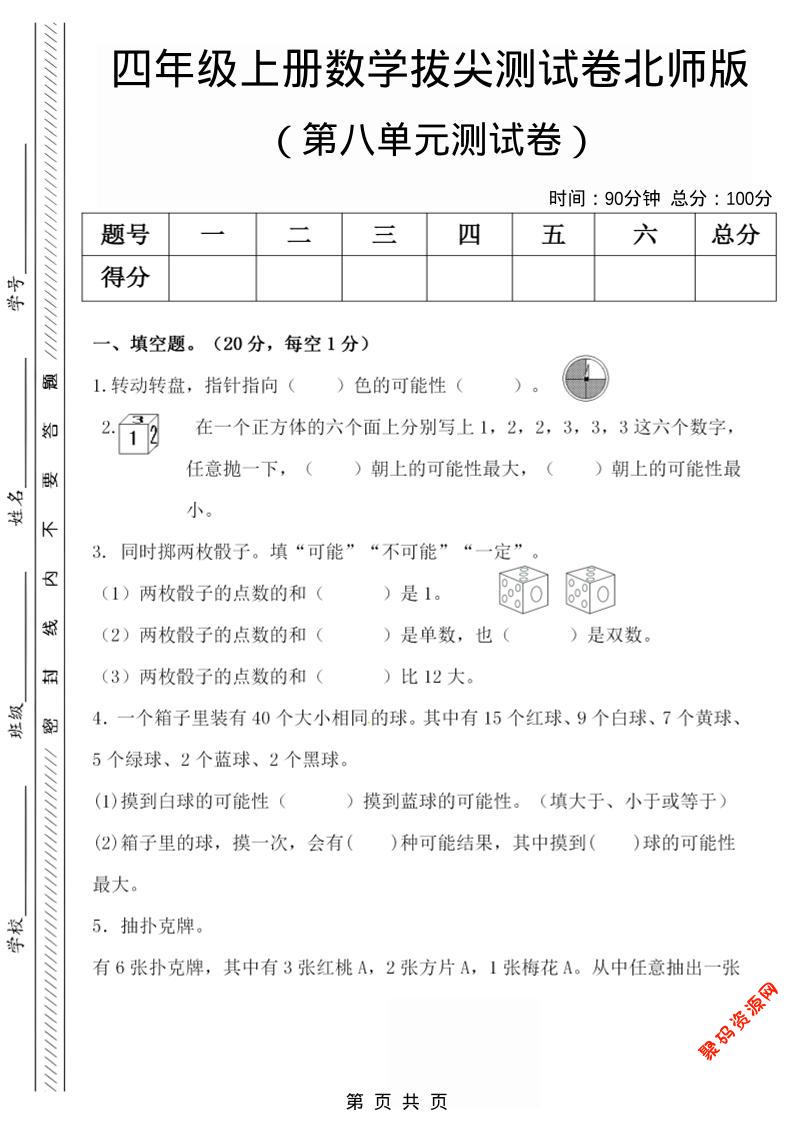 聚码网 四年级 四年级上数学第八单元检测试卷.1《北师版》 http://www.appstore168.com/108576.html