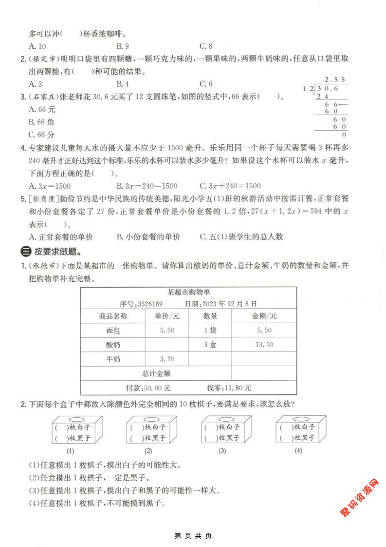- 五年级上数学第八、九单元测试卷2《冀教版》 2025-12-25