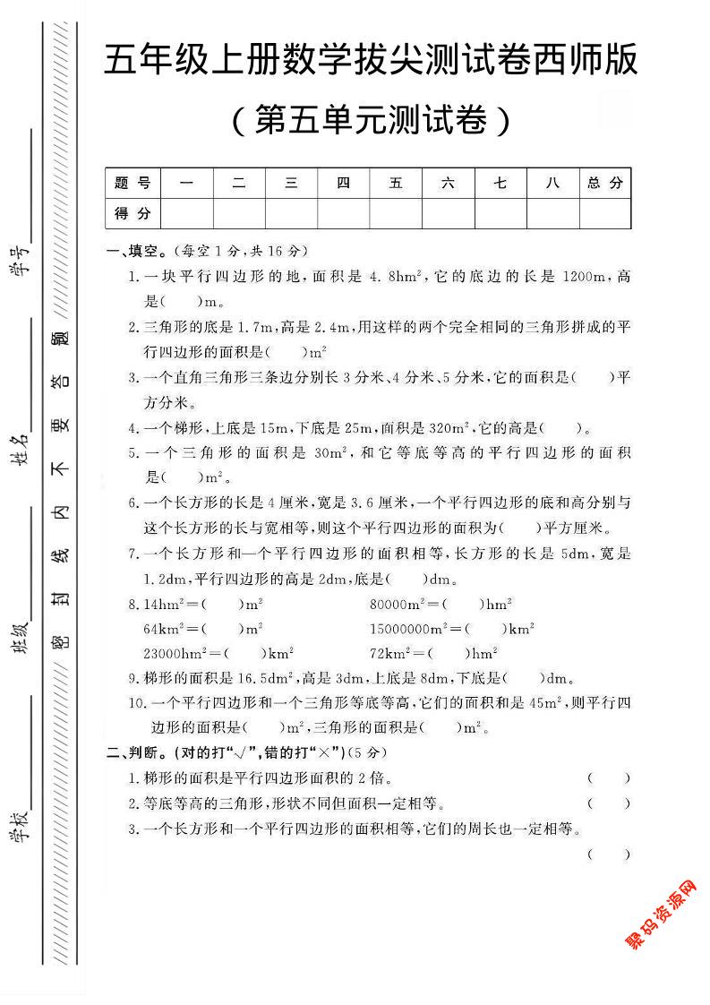 聚码网 五年级 五年级上数学第五单元测试卷1《西师版》 http://www.appstore168.com/108618.html