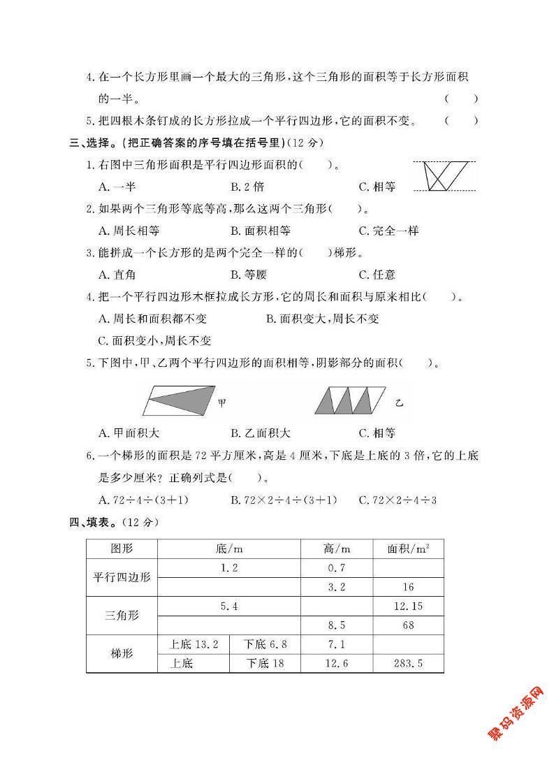 - 五年级上数学第五单元测试卷《苏教版》 2025-12-26