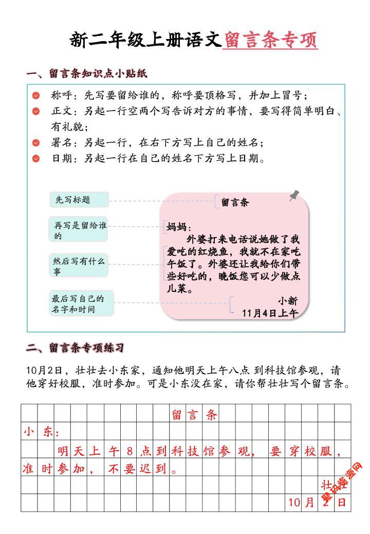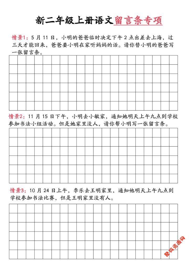 聚码网 二年级 新二上语文留言条专项练习(第六单元含答案10页) http://www.appstore168.com/108733.html