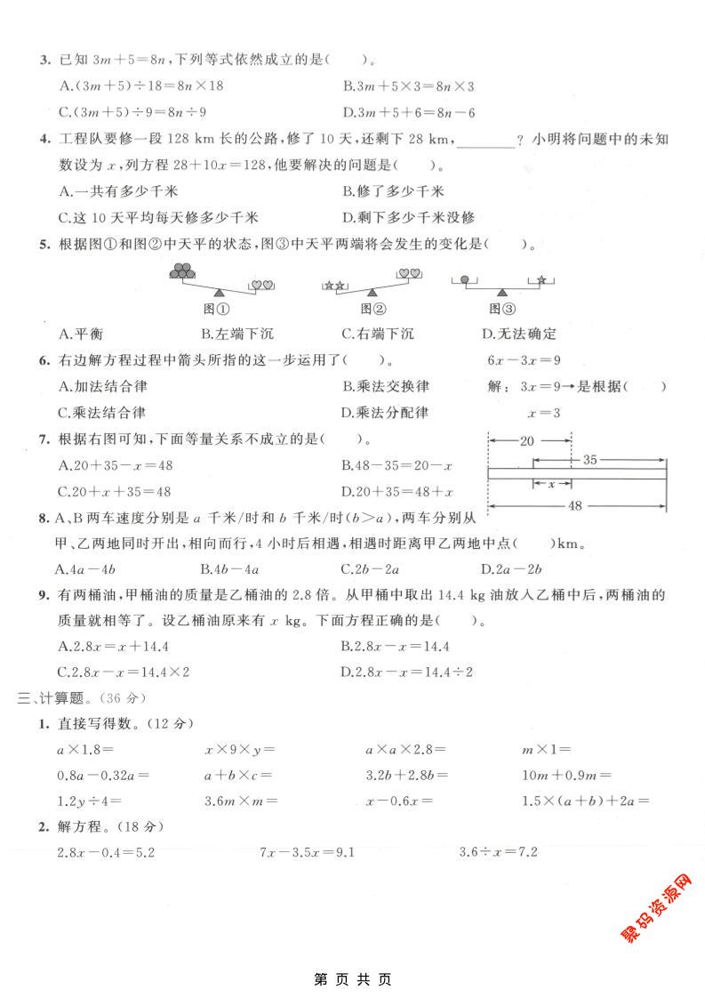 - 五年级上数学方程专项测试卷《人教版》 2025-12-29