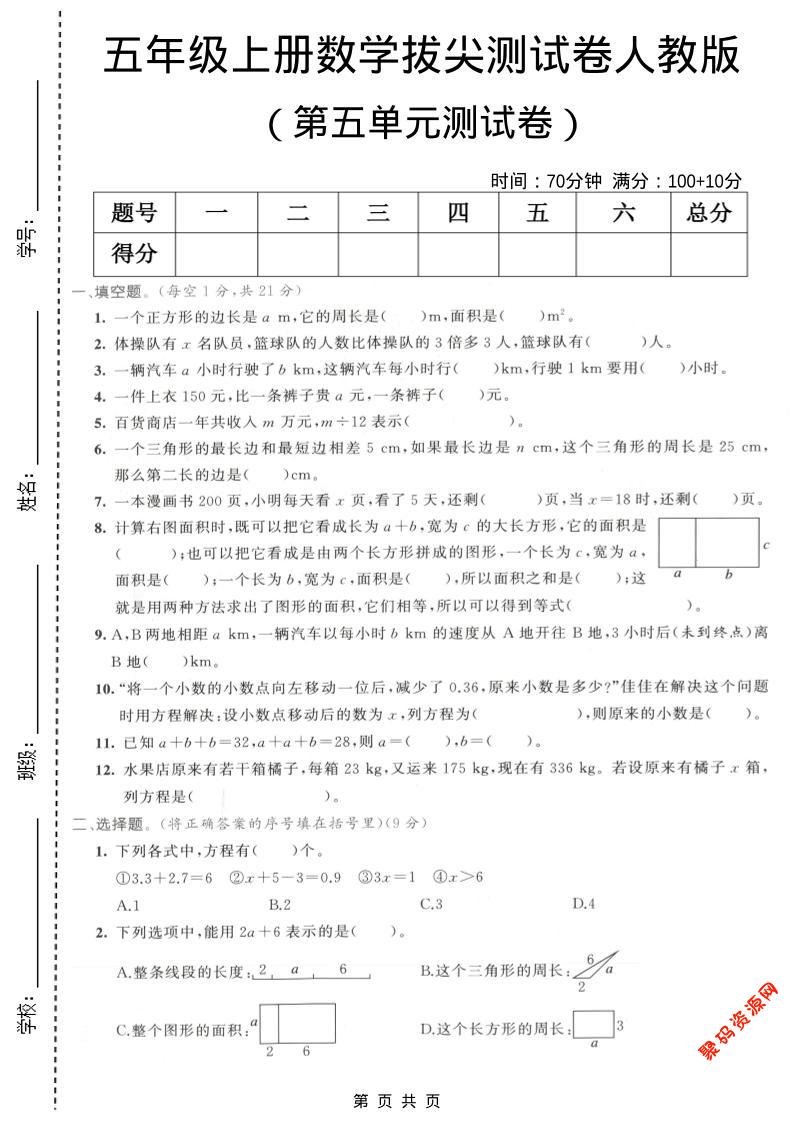 - 五年级上数学第五单元拔尖测试卷2《人教版》 2025-12-29