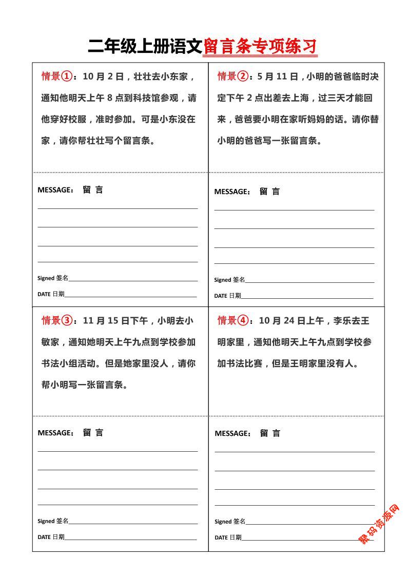 聚码网 二年级 二上语文第六单元【留言条】专项练习含答案4页 http://www.appstore168.com/108792.html