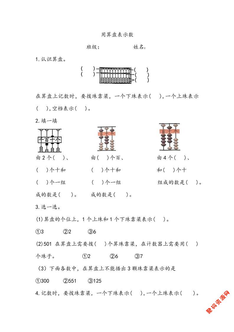 聚码网 二年级 二上数学用算盘表示数专项练习2页 http://www.appstore168.com/108797.html
