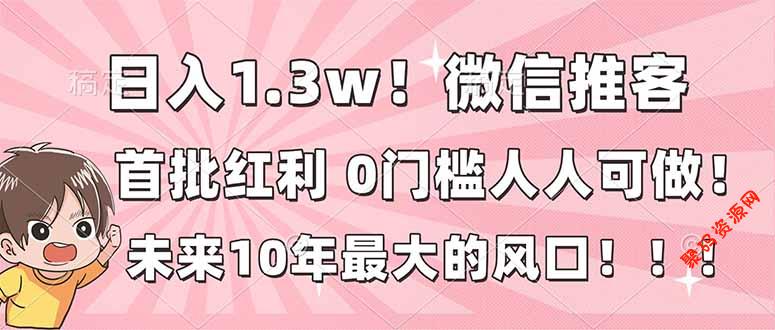 微信推客是微信推出的分享功能。简单来说,给微信小店推广的人就叫推客!客户通过你分享的链接进行了购买,就能获得商家给的推广佣金。微信存在很多年了,但是到2025年5月14号腾讯才正式对外官宣成立微信电商部门,微信电商正式启动。多年前以淘宝为首的传统电商时代,就有很多隐形的富豪通过分享淘宝的优惠商品到自己的微信,赚得盆满钵满。错过了淘宝,美团,滴滴,抖音的分享,当下微信小店电商是腾讯的核心战略方向,我们推客平台也刚刚启动第三天,就已经有日入几千甚至五位数的推客了。目前是超级大风口,当全民带货风口或趋势来临的时候,是所有人创业的大好机会!
