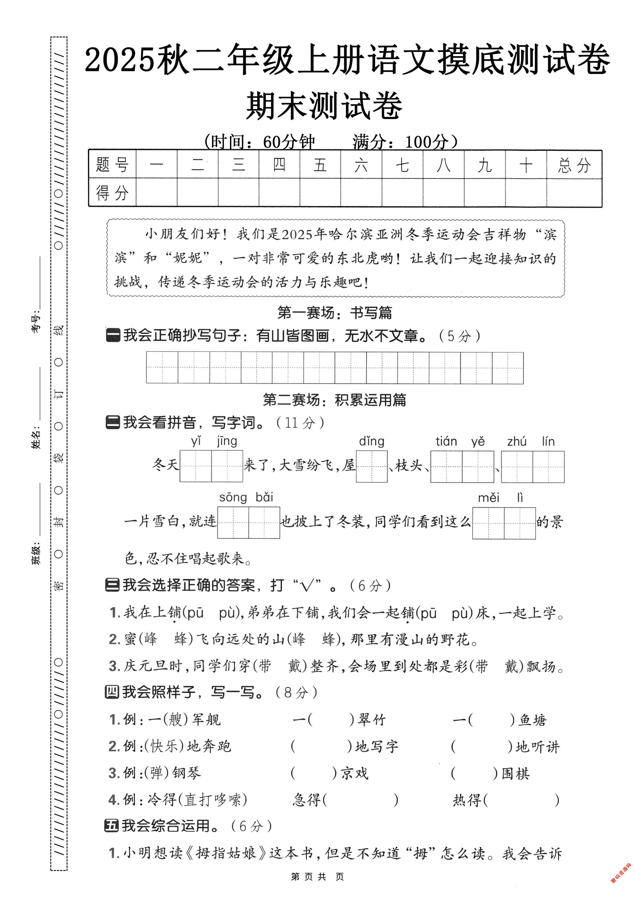 聚码网 二年级 25秋二上语文期末押题模拟测试卷五套(含答案25页) http://www.appstore168.com/109985.html