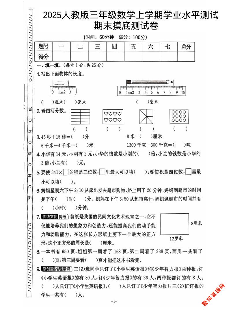 聚码网 三年级 25秋三上数学期末押题模拟测试卷五套(人教版含答案25页) http://www.appstore168.com/110020.html