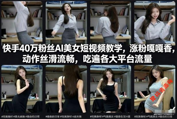 快手40万粉丝博主AI美女短视频教学,涨粉嘎嘎香,动作丝滑流畅,吃遍各大平台流量
