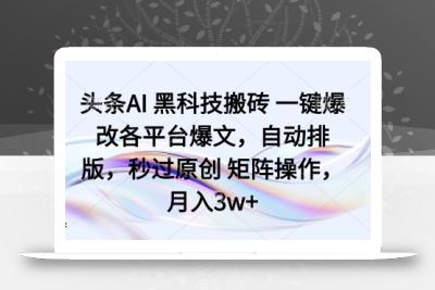 头条搬砖最新玩法,文章+视频用AI全搞定,一天5张+不是问题,每天只需10分钟