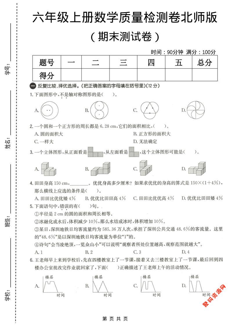 聚码网 六年级 六年级上数学期末质量测试卷3《北师版》 http://www.appstore168.com/110346.html