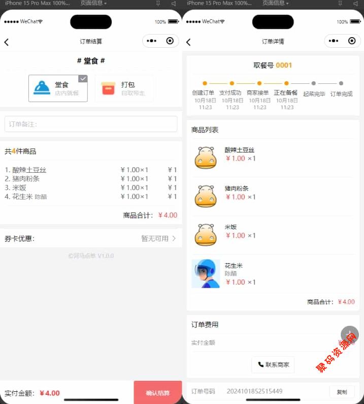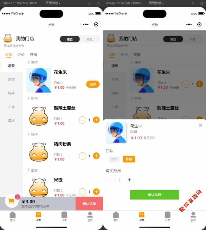 3.点单模式:支持堂食,外卖,打包自取。