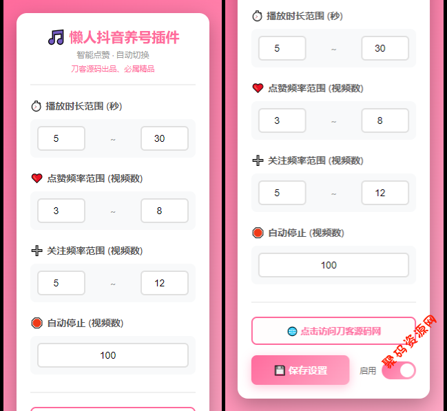 刚写的一个浏览器插件源码,可以控制的视频播放时长、点赞频率、关注频率、播放数量